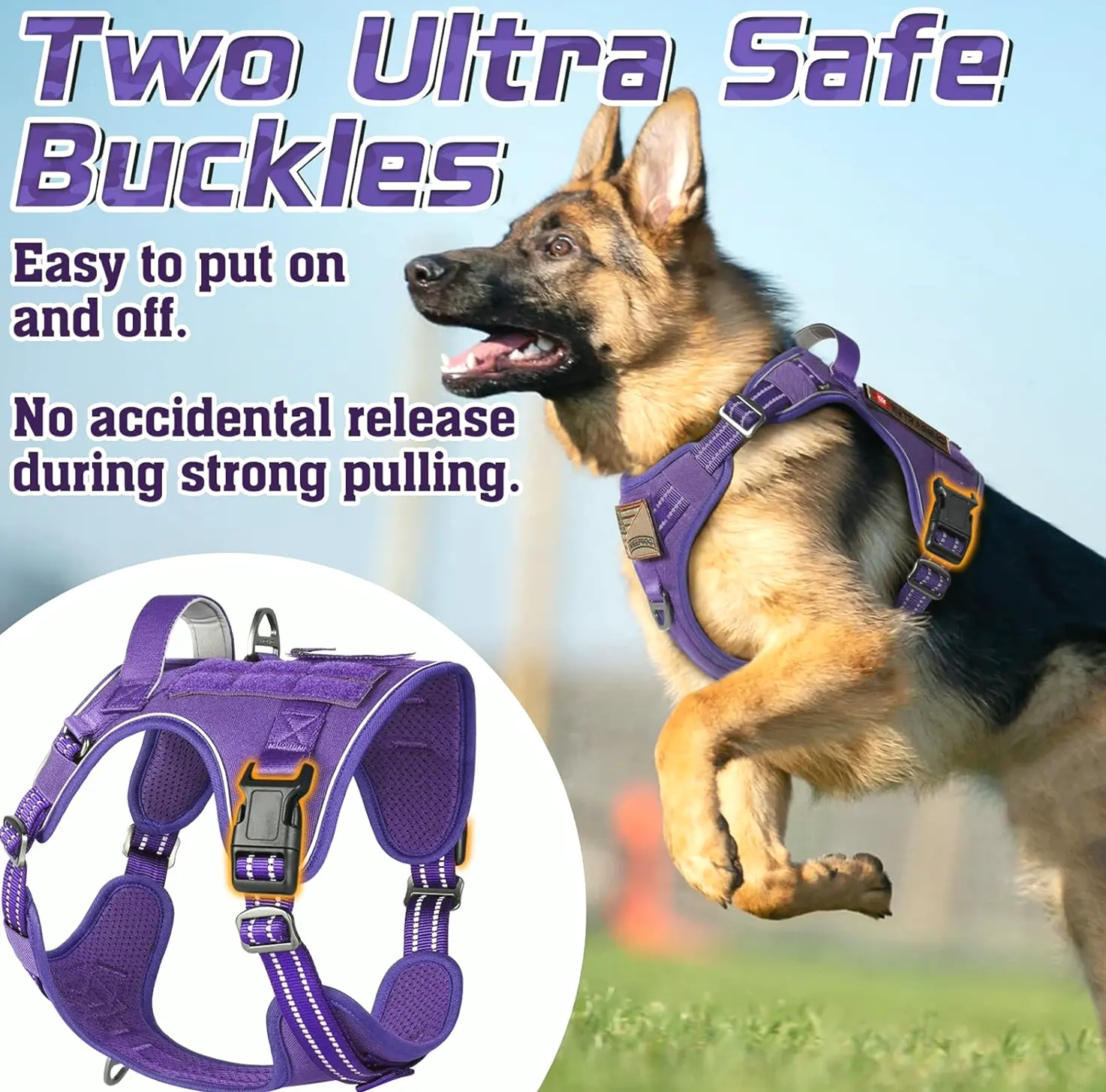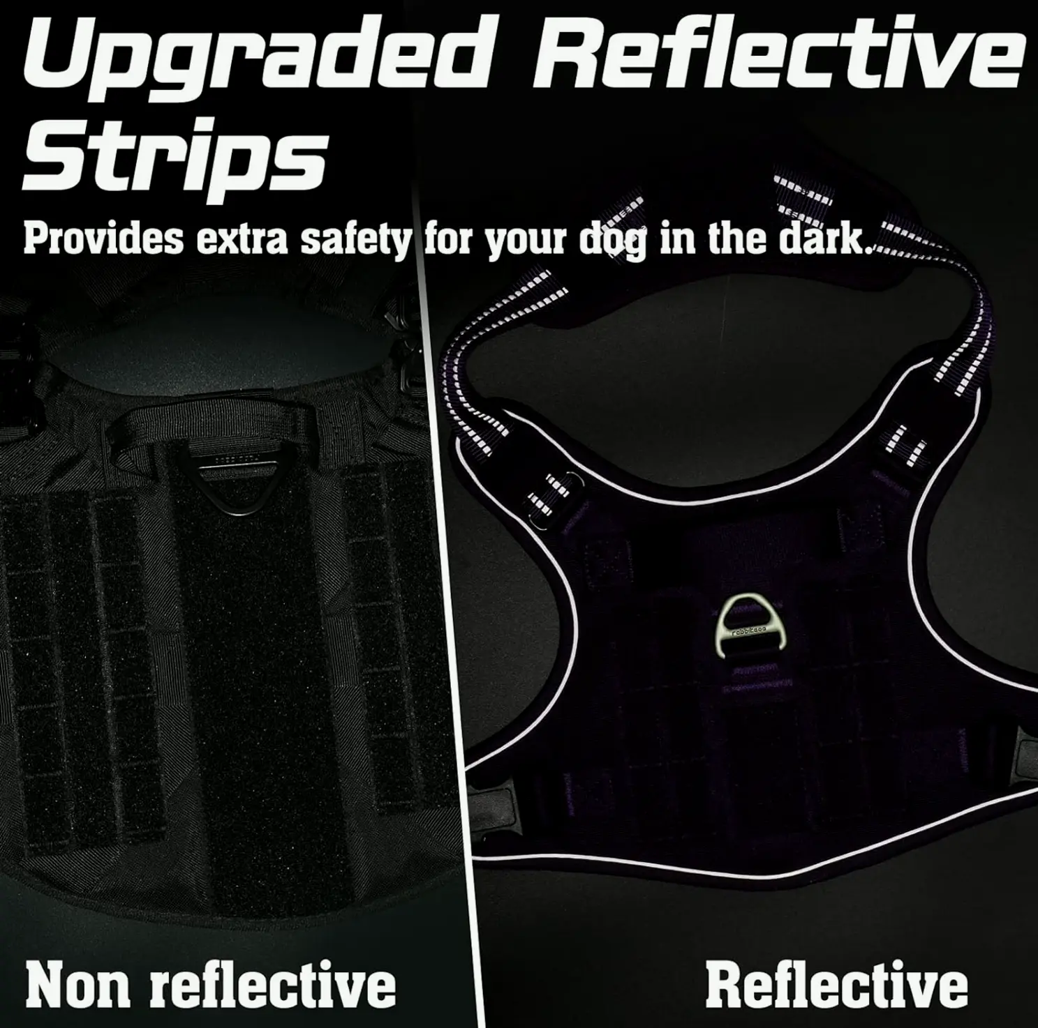This XL Combat Dog Vest is perfect for big dogs like Rottweiler, German Shepherd, Mastiff, Siberian Husky, and more. It fits comfortably with customizable torso and collar girth. The design features 4 adjustment points and quick-release buckles for easy on/off. High-vis trims ensure night visibility, and two strong steel leash attachments guarantee functionality. The MOLLE system provides space for bags and gear, letting for personalization with patches, water containers, and additional gear. Super comfortable padding offers comfortable and safe outside adventures.